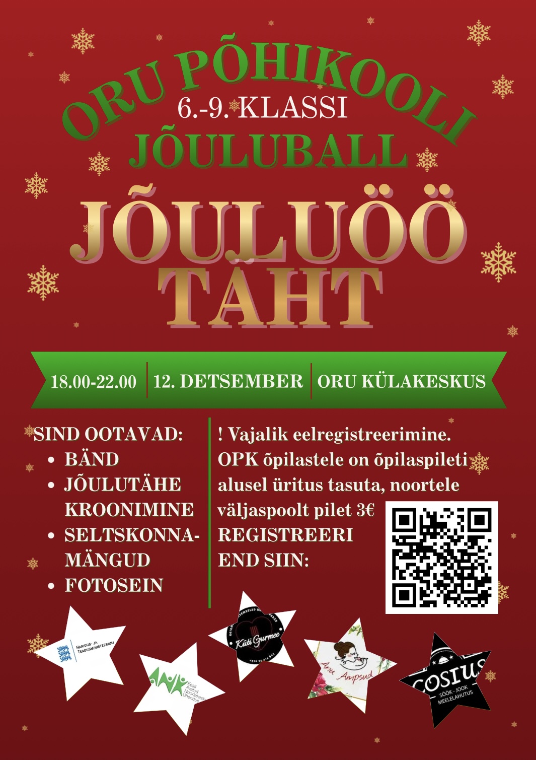 Ootame Sind ja Sinu kaaslast 12. detsembril Oru Külakeskusesse, kus toimub Oru Põhikooli esimene Jõuluball, mis kannab pealkirja “Jõuluöö täht”⭐️!